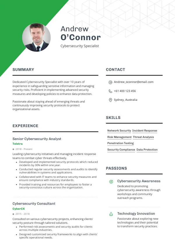 Don’t miss your chance to secure a position as a Cybersecurity Specialist in Australia with a professionally crafted resume.