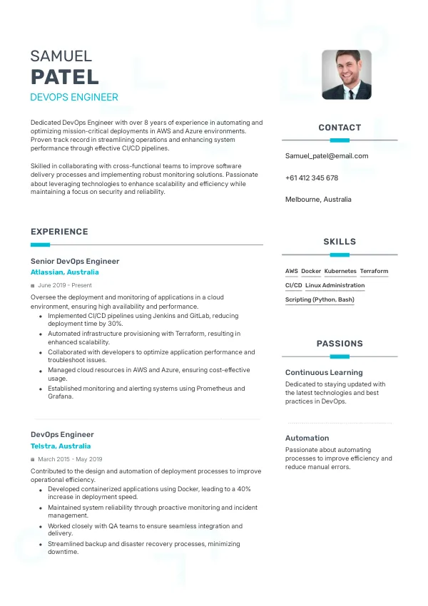 The average salary for DevOps Engineers in Australia ranges between A$90,000 to A$150,000, depending on experience and location. The Australian job market is actively seeking skilled professionals under the MLTSSL, making this an opportune time for migration. Acquiring a well-crafted Australia Skilled Migration Resume increases your chances of landing interviews and securing sponsorship.