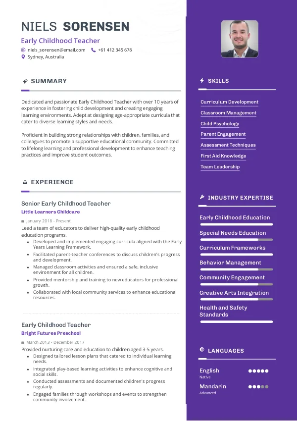 Your resume should include relevant skills, experience, and qualifications tailored to the Early Childhood Teacher role.