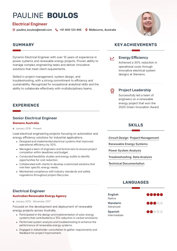 The role of an Electrical Engineer in Australia is dynamic and essential across various industries. With increasing demand for innovative solutions, the right CV & Resume can make a significant difference in your job search.