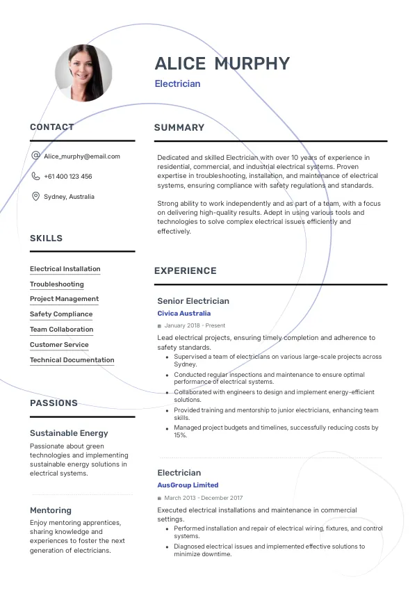 Are you an Electrician looking to enhance your job opportunities in Australia? With competition rising in the job market, having a tailored CV & resume is crucial. Our professional resume service at Truecv specializes in creating resumes that highlight your skills and experience effectively.