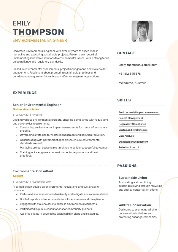 Are you ready to take the next step in your career as an Environmental Engineer in Australia? Order your professional Australia Skilled Migration Resume today and unlock new opportunities!