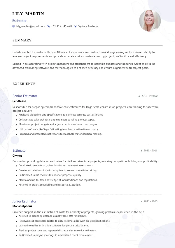 Get a professional Estimator resume tailored to your skills and today’s hiring trends.