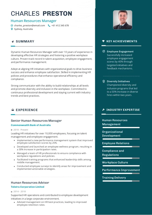 What makes a strong Human Resources Manager resume in Australia?