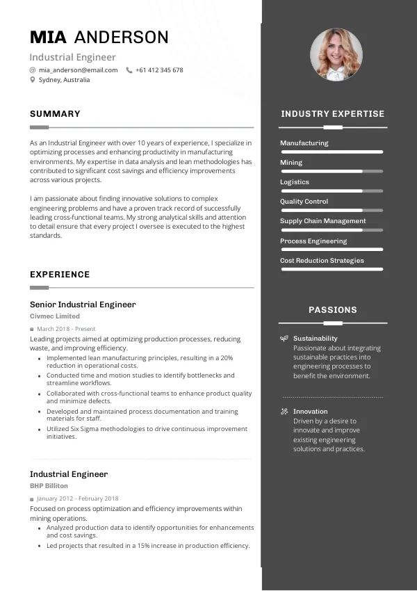 A professionally crafted Industrial Engineer Australia Skilled Migration Resume increases your visibility to employers and aligns with their expectations, enhancing your chances of securing interviews.