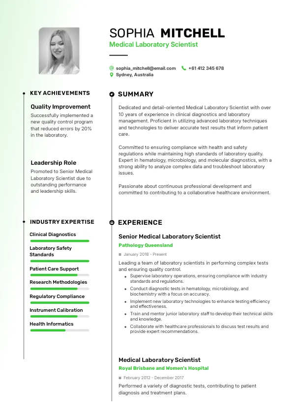 - Create Truecv Medical Laboratory Scientist Resume: Use our service to craft a compelling CV & Resume tailored for Australia.