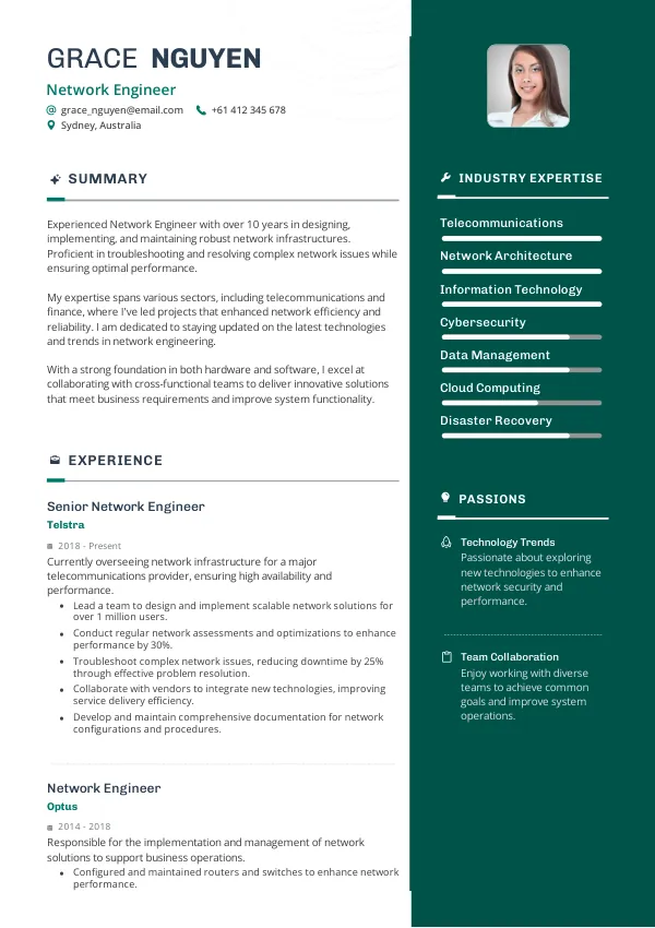 Don’t miss your chance to stand out to employers in Australia. Start your journey towards a successful career as a Network Engineer with our professional CV & Resume service. For just A$9, you can unlock a tailored resume that showcases your strengths. Contact us today and take that crucial step towards your dream job!