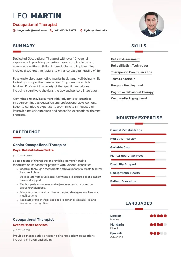 A results-focused Occupational Therapist resume that highlights your impact and passes ATS filters.