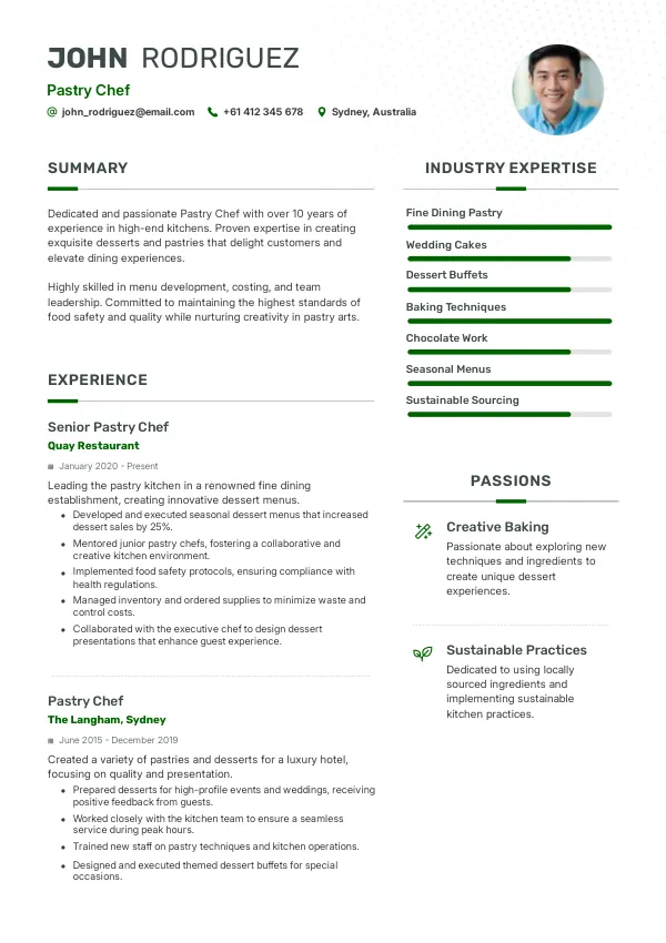 Don’t miss your chance to secure your future in Australia with a professional Pastry Chef Australia Skilled Migration Resume.