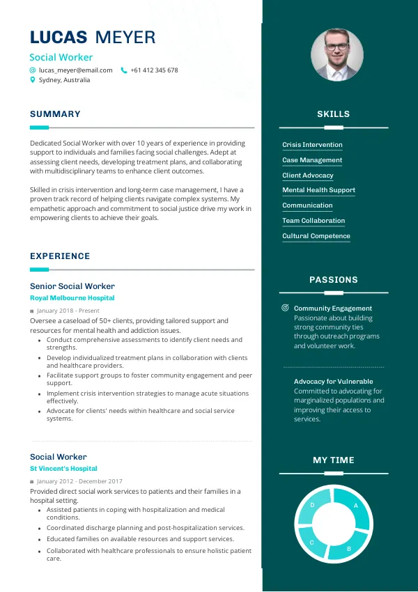 The demand for Social Workers in Australia remains strong, driven by a growing awareness of mental health issues and social challenges. While salaries may vary by state and experience level, Social Workers can expect salaries ranging from A$60,000 to A$90,000 annually. This presents a favorable job outlook, especially for those with a well-crafted CV & Resume that highlights their unique qualifications.