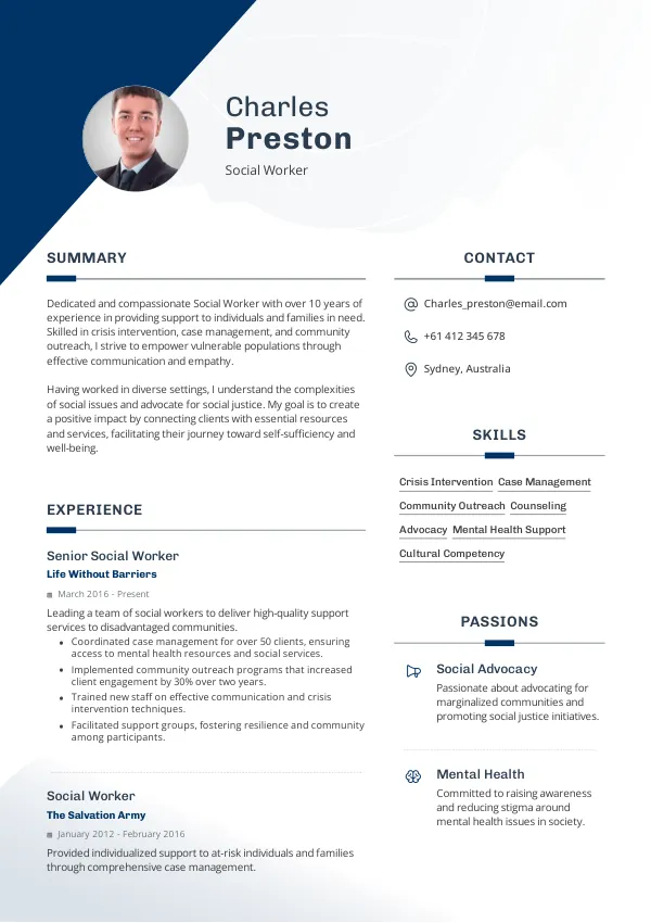 A results-focused Social Worker resume that highlights your impact and passes ATS filters.