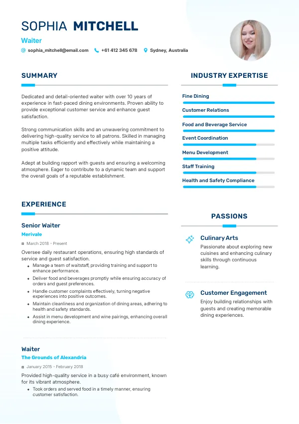A well-crafted resume can highlight your skills and experiences, making you more appealing to employers in the competitive Australian hospitality market.