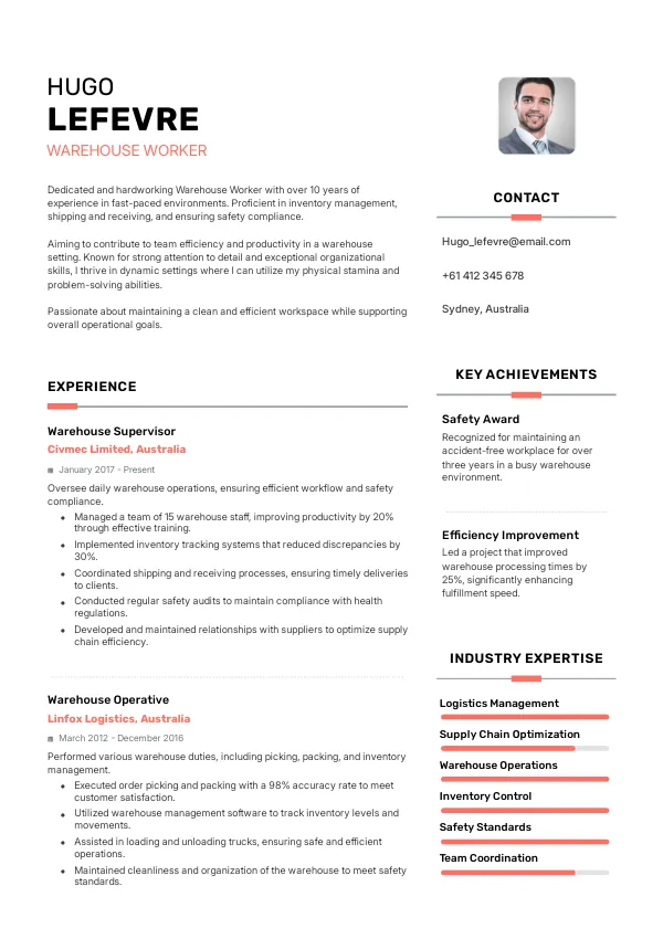 Resume Examples for Warehouse Workers in Australia